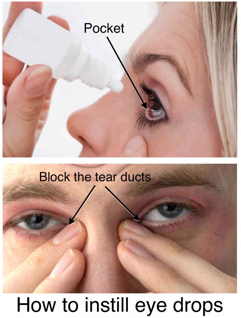 - Drop a single eye drop into the pocket formed by the lower lid and the eye. Avoid placing drops directly on the eyeball.